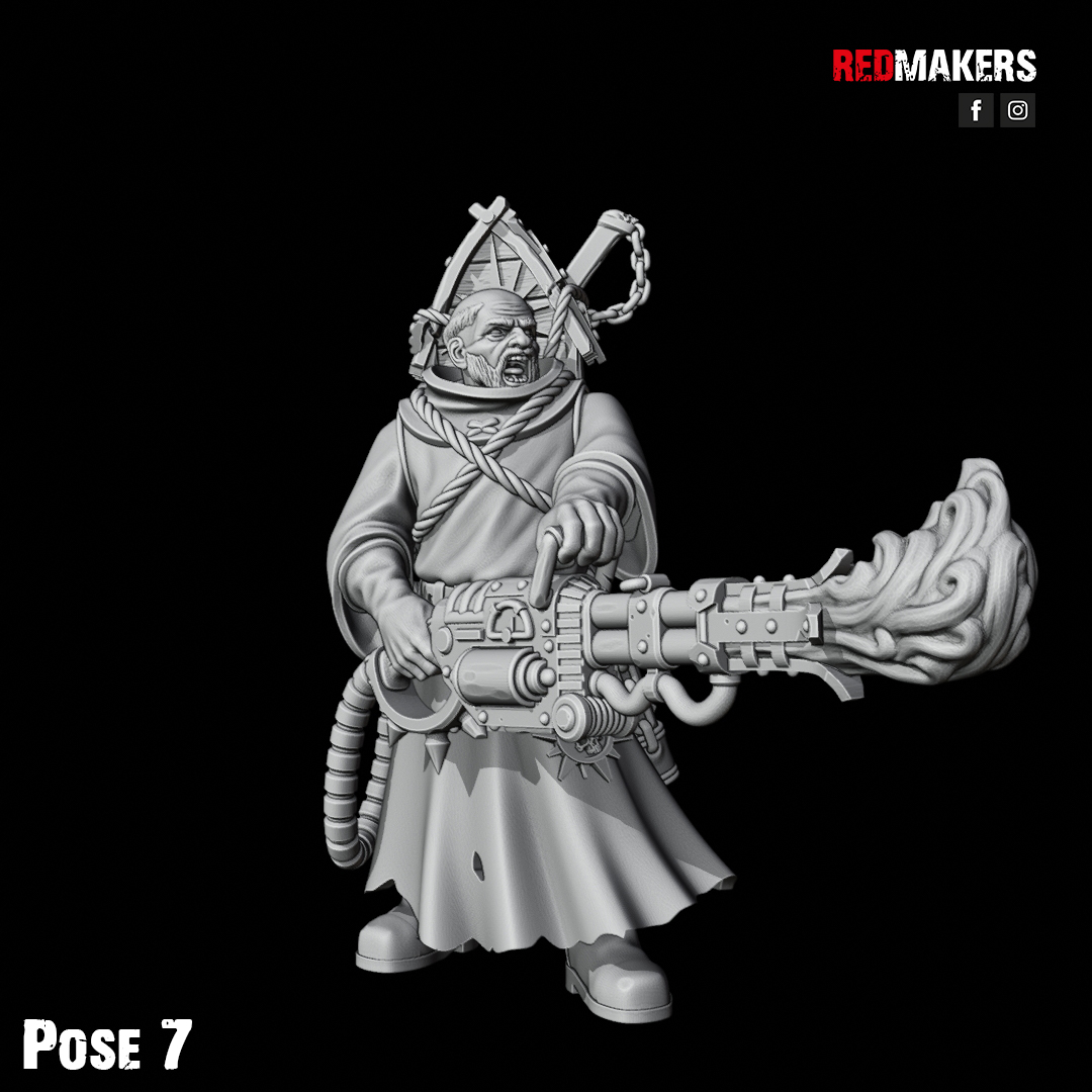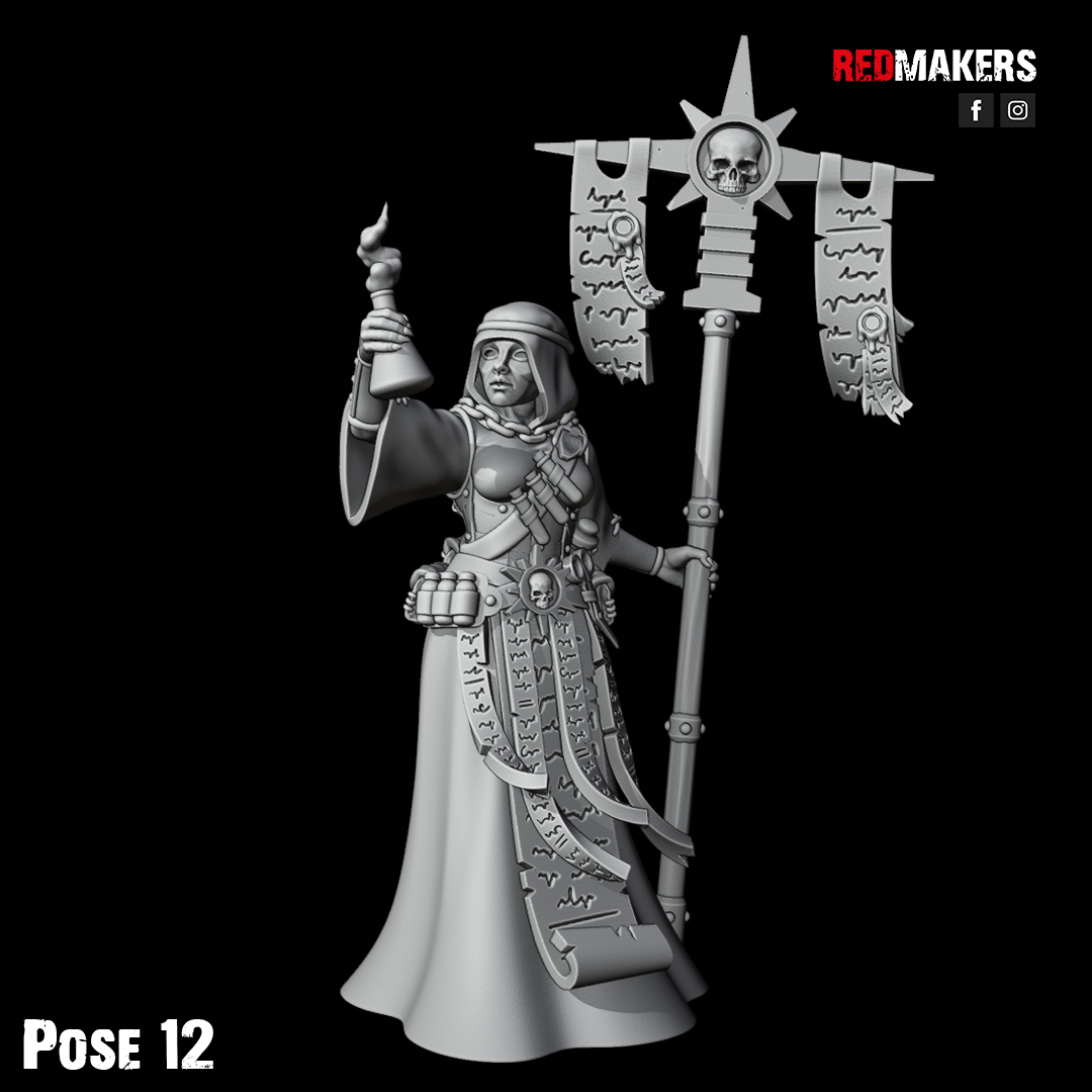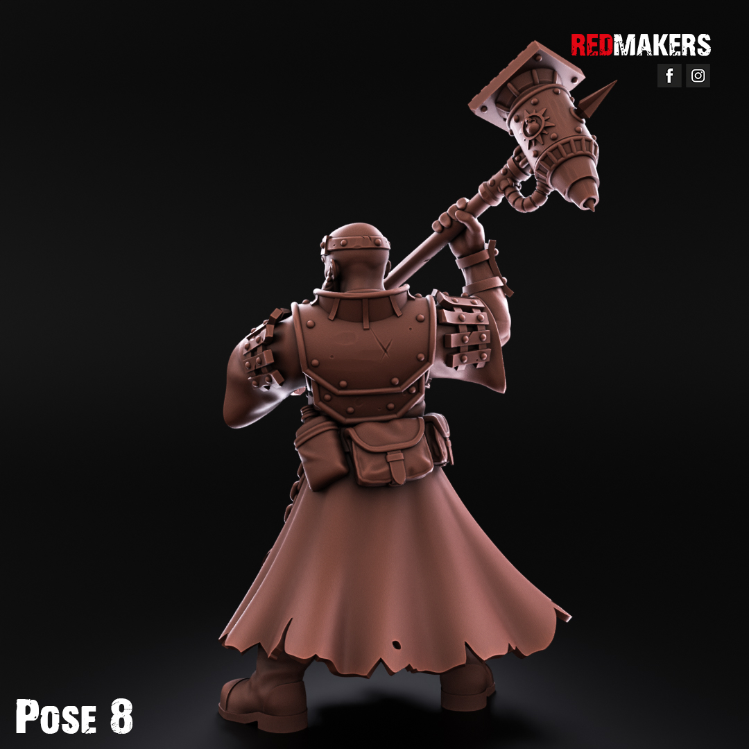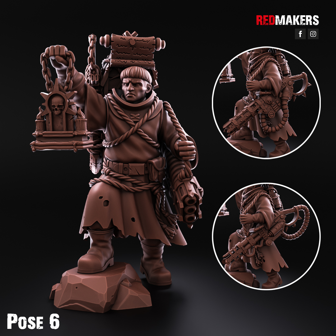 13 zealots of faith – Pose 1 fits a 32mm base, the rest are designed for 28mm; has pre-supported files (SLA).