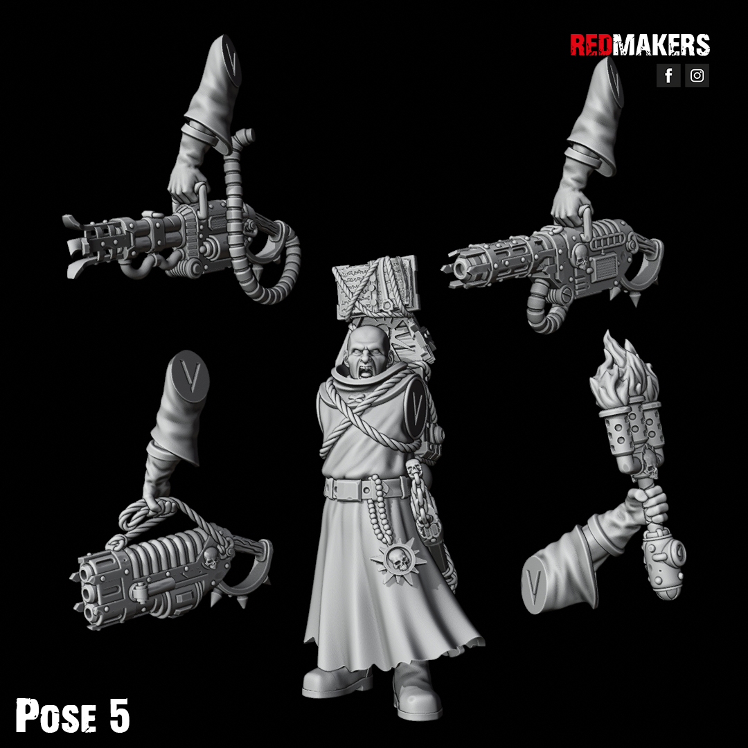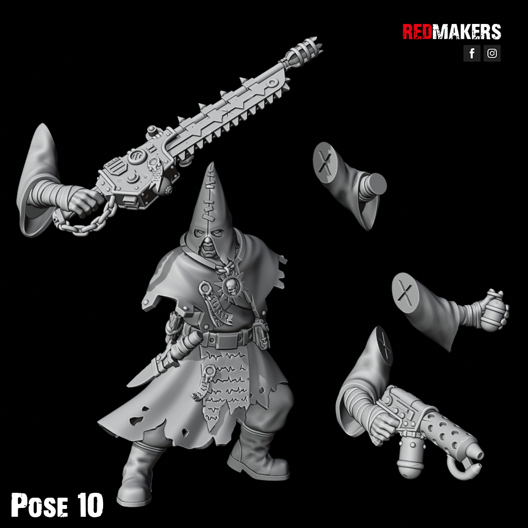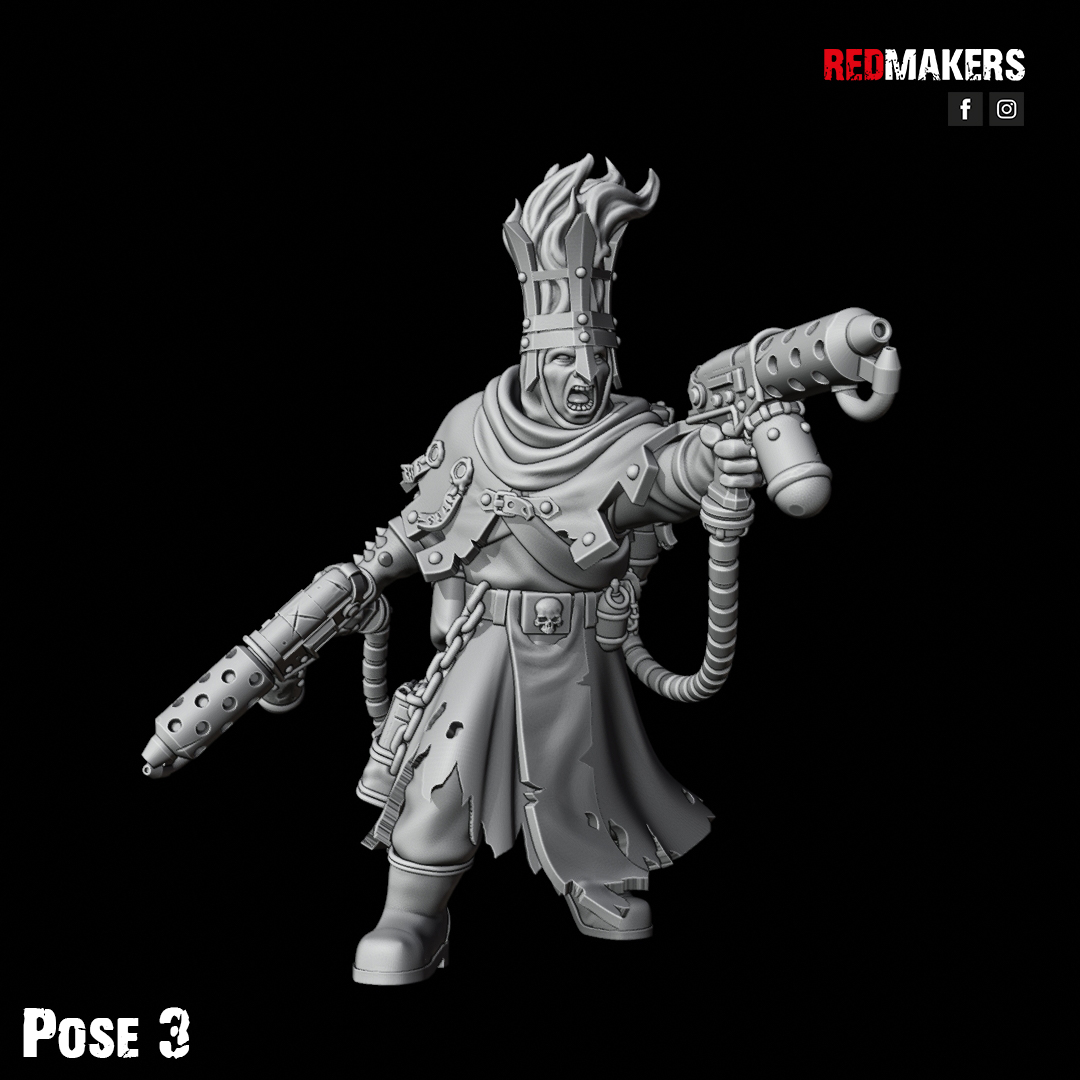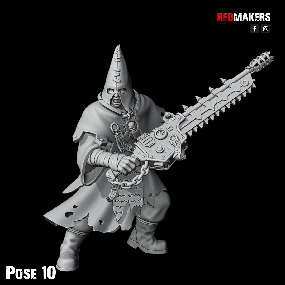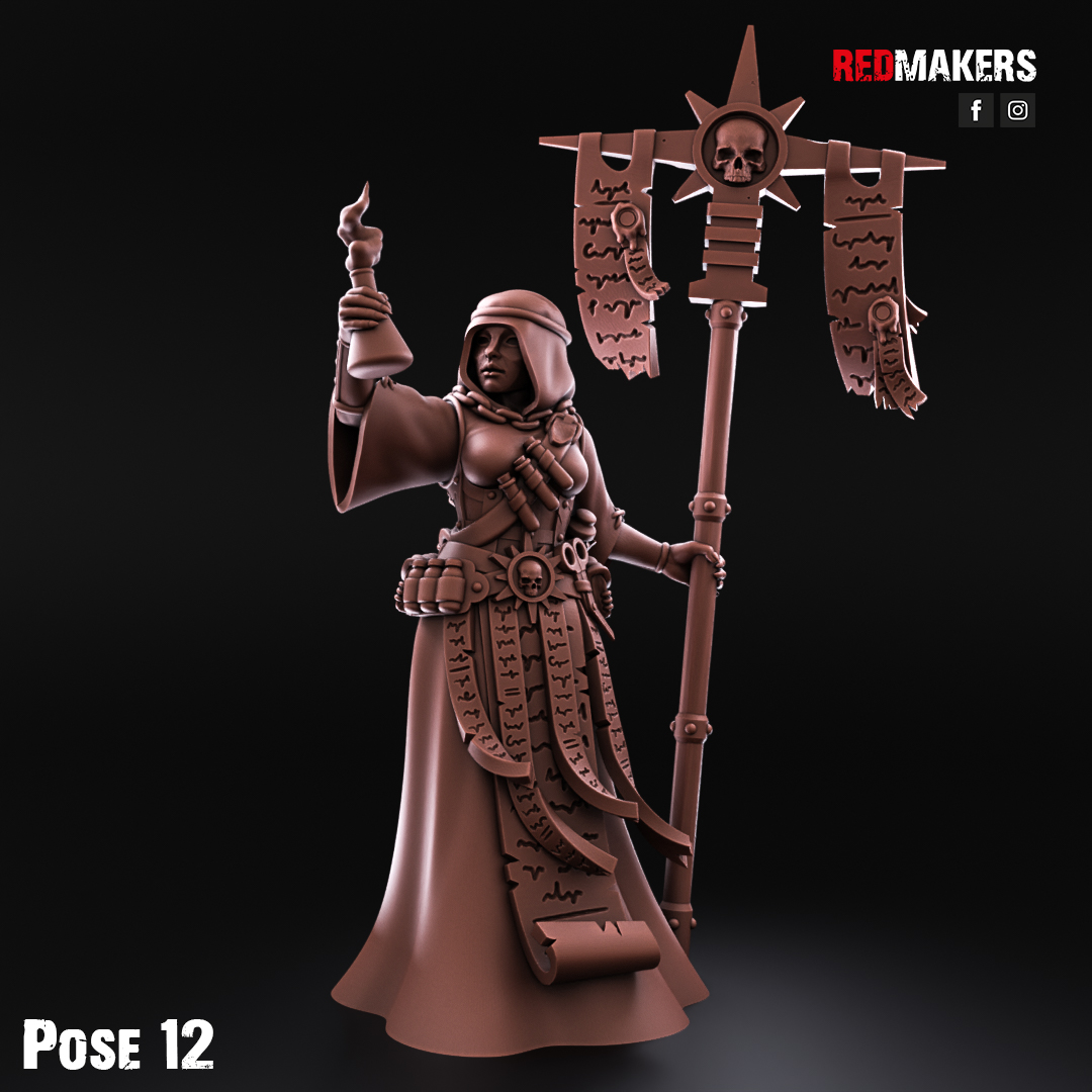 13 zealots of faith – Pose 1 fits a 32mm base, the rest are designed for 28mm; has pre-supported files (SLA).