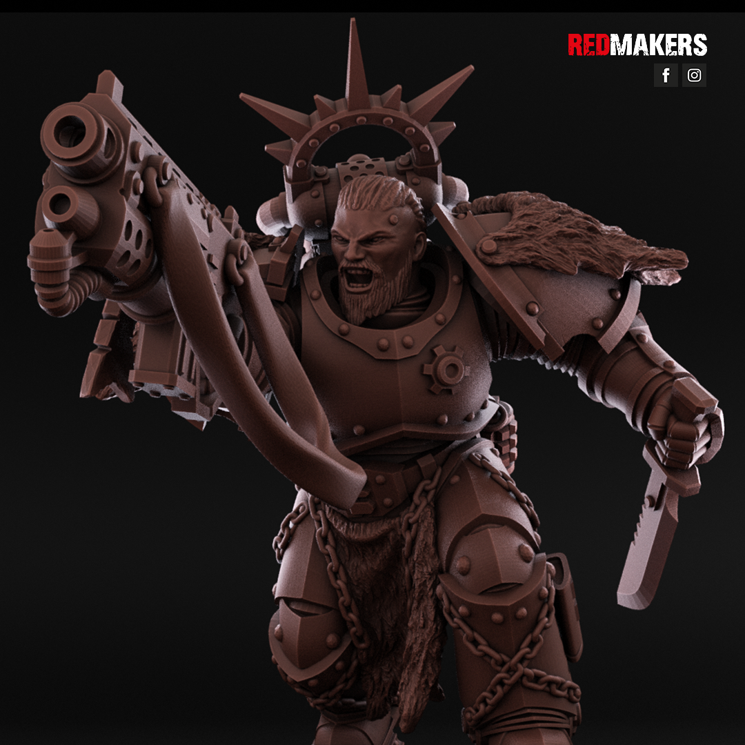 This pack consists of one Space Knight Sergeant, with a wide variety of single weapons. Scaled for 28 mm tabletop.