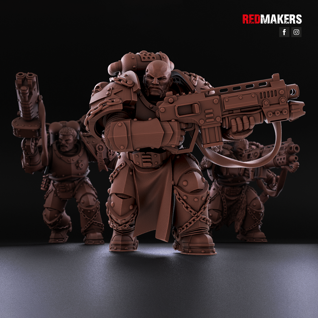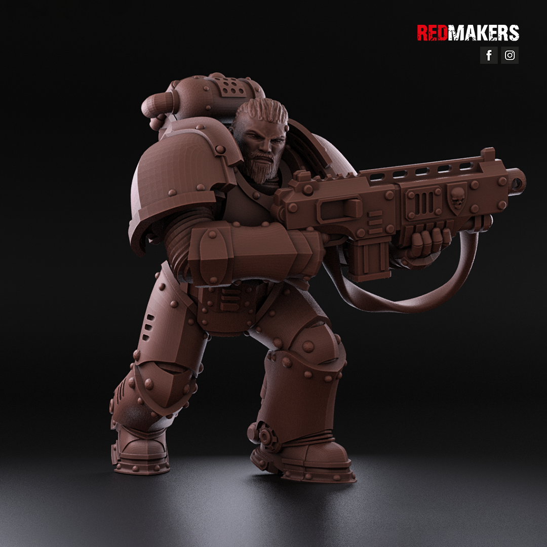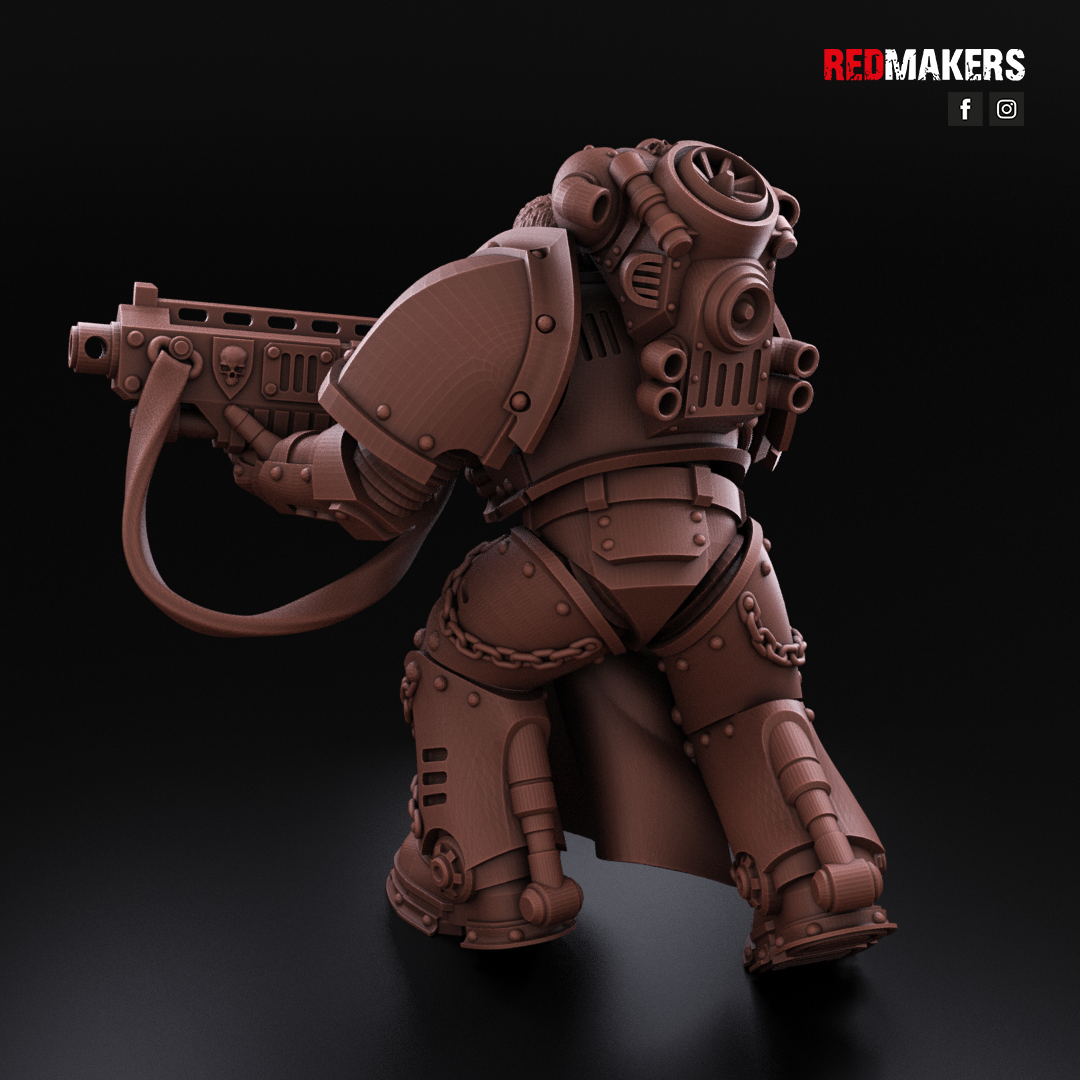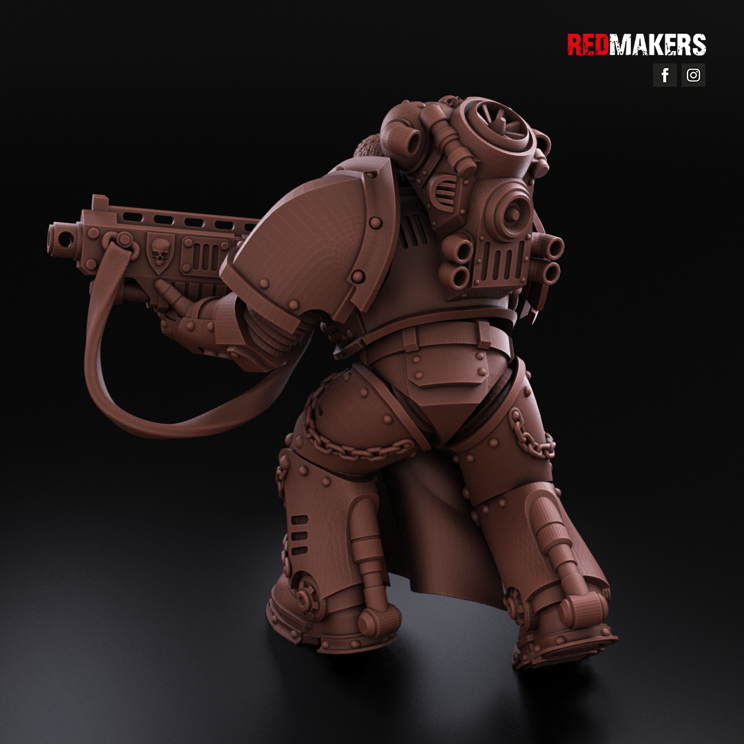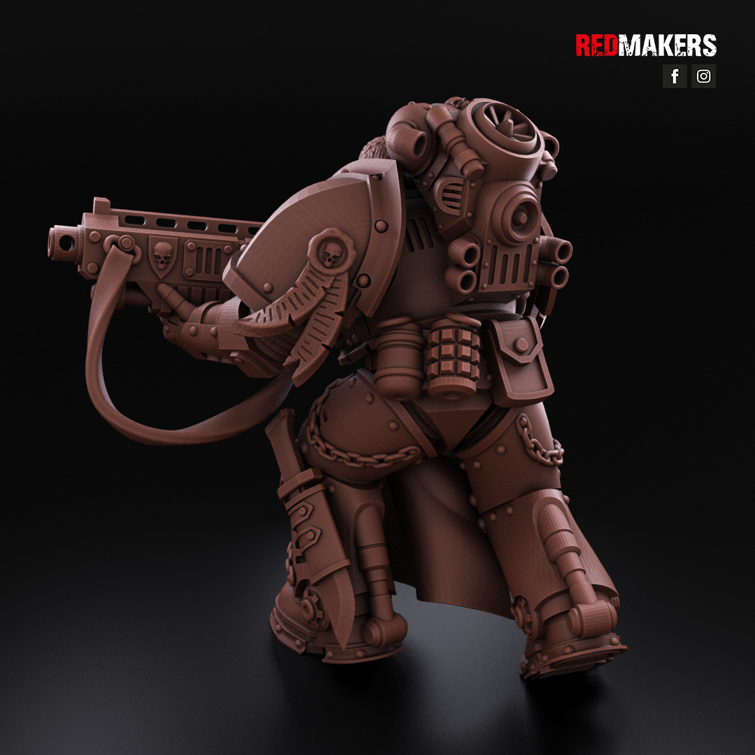 The design of these unit is driven by the need to create warrior in a heavy armor suit in a sci-fi style. The shape of the armor is a consequence of the anatomical features of the human body, as well as the need to use it in motion. Any resemblance to other characters is purely coincidental.