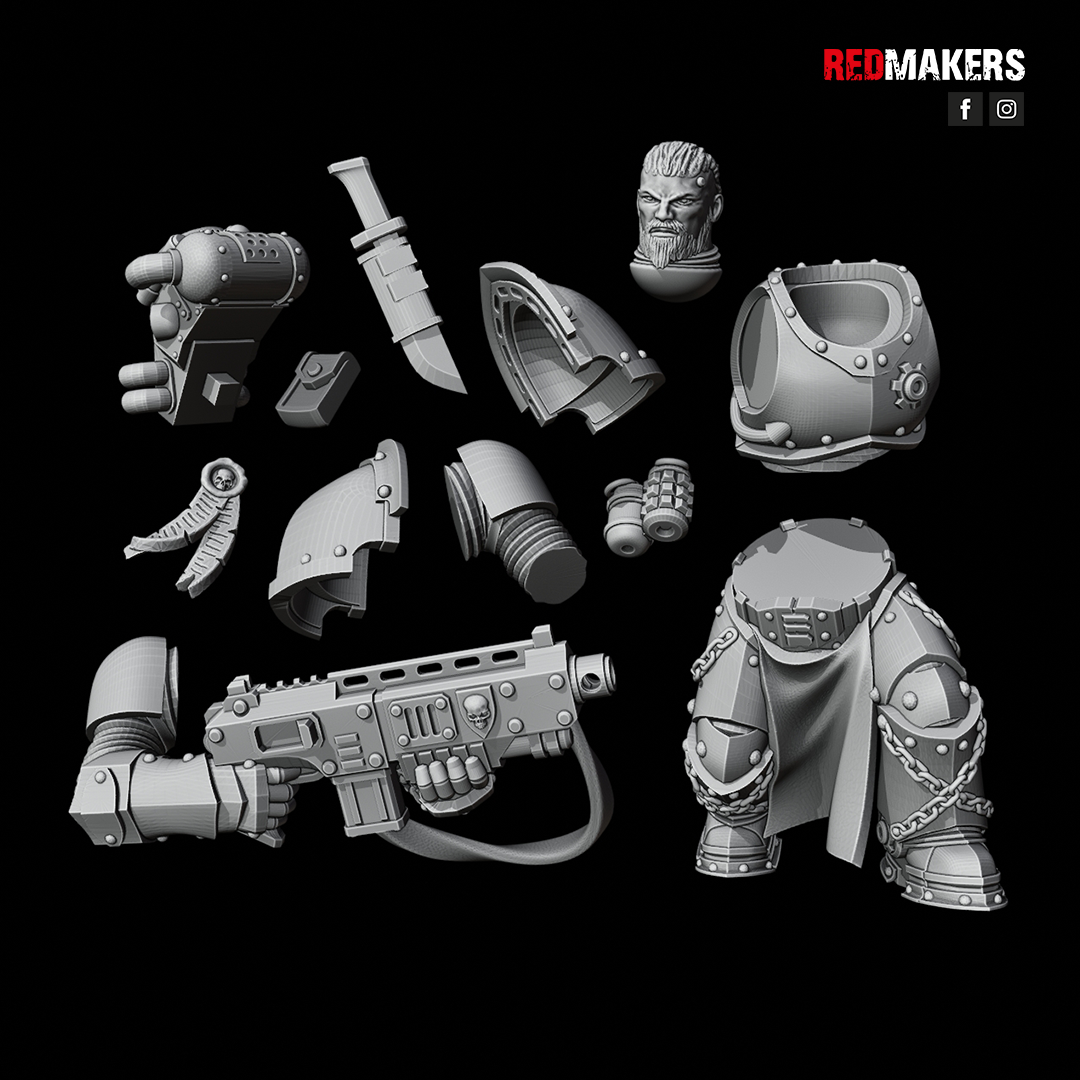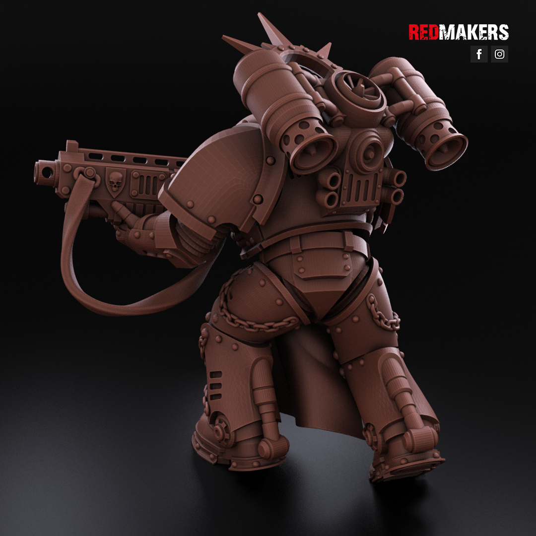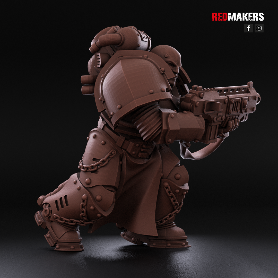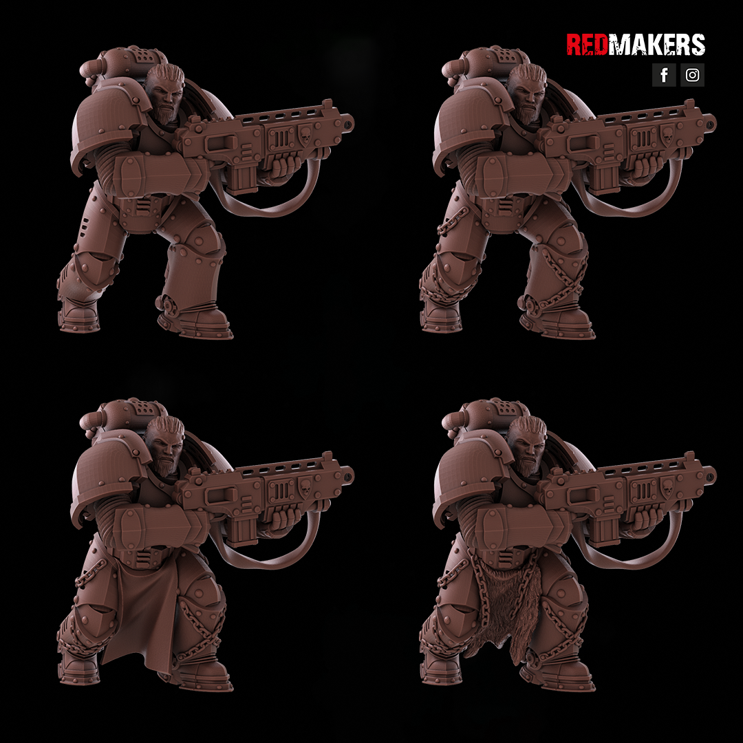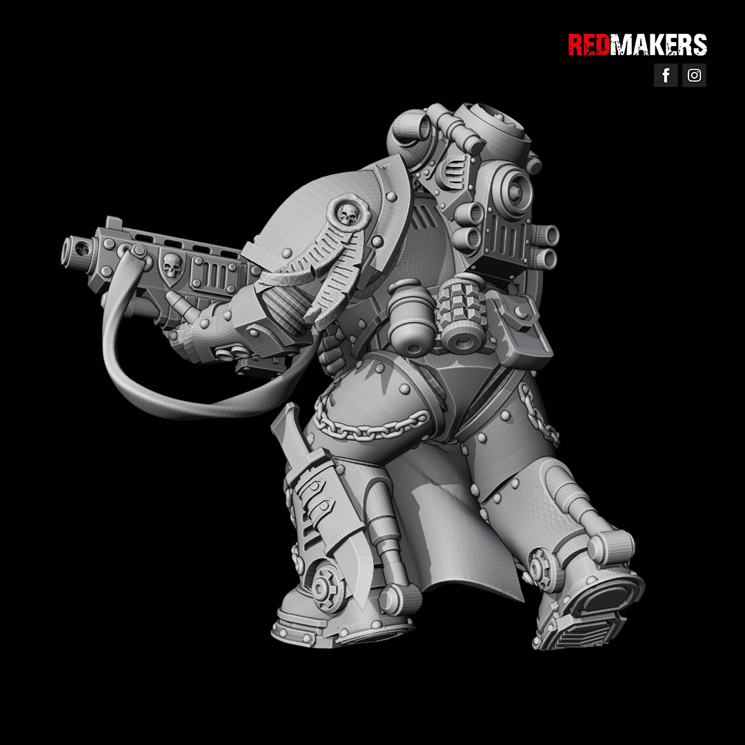 The design of these unit is driven by the need to create warrior in a heavy armor suit in a sci-fi style. The shape of the armor is a consequence of the anatomical features of the human body, as well as the need to use it in motion. Any resemblance to other characters is purely coincidental.