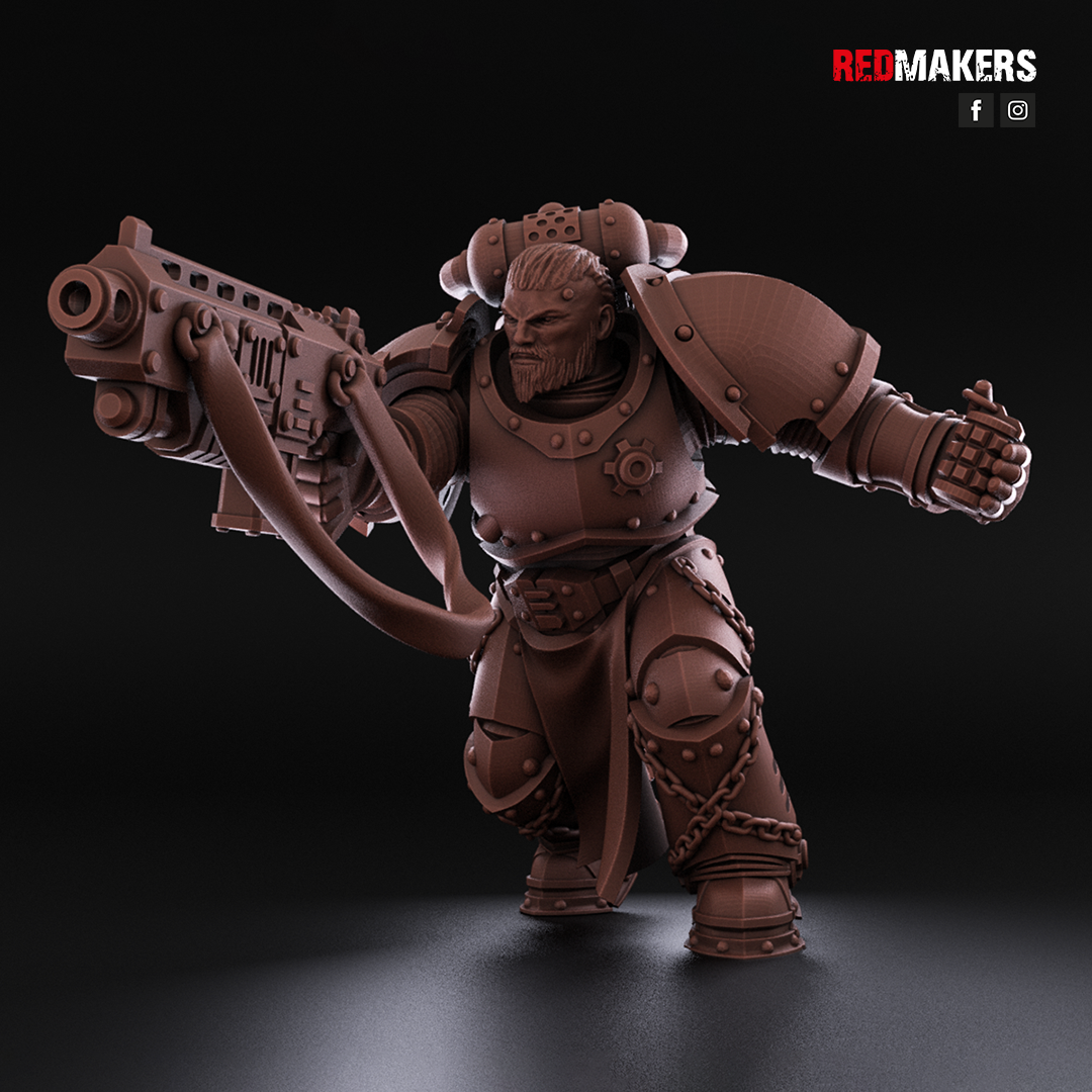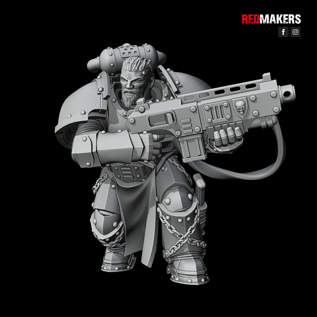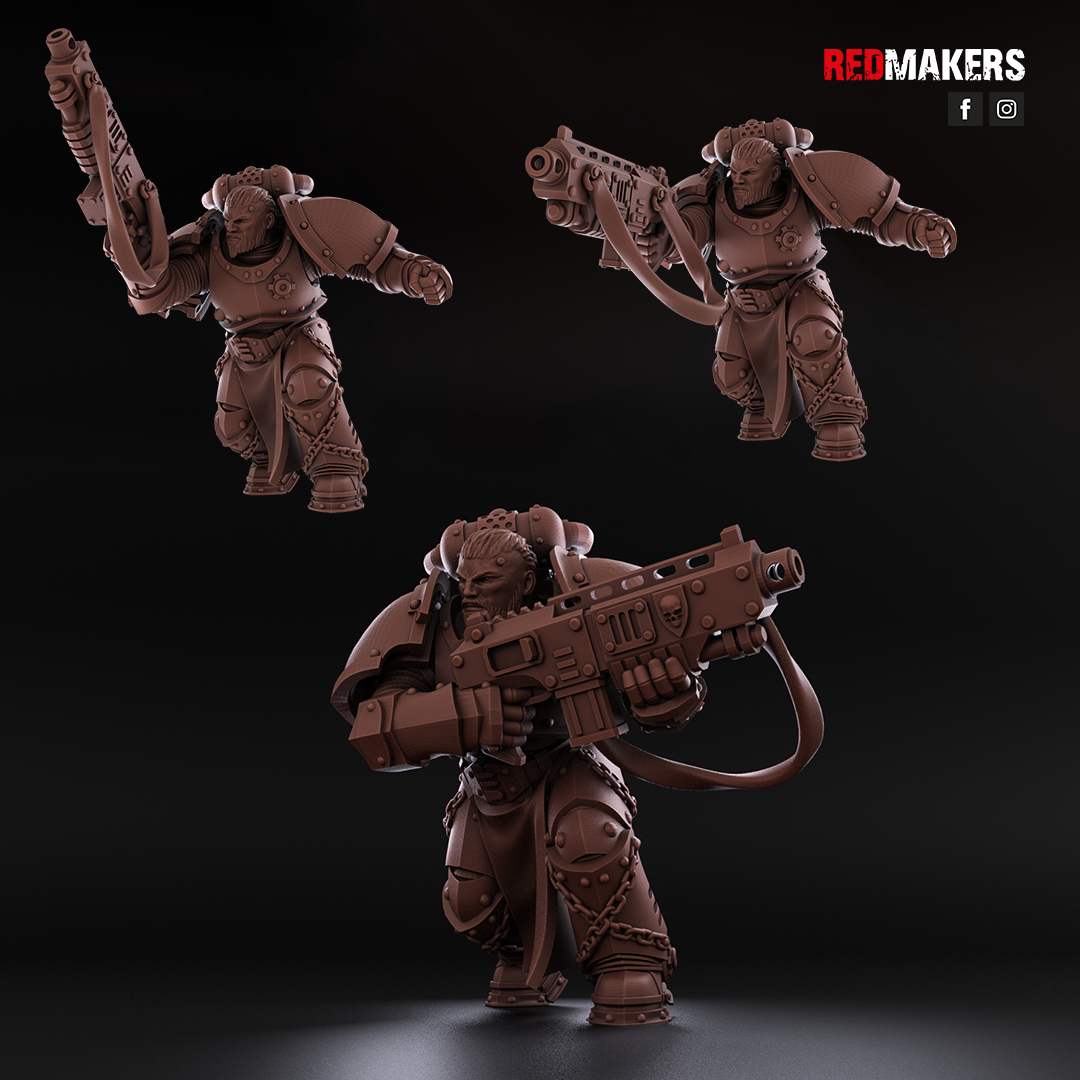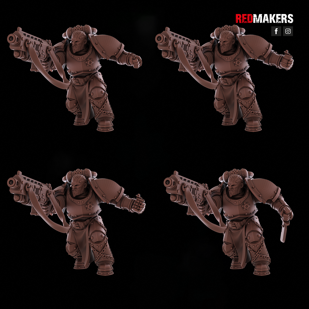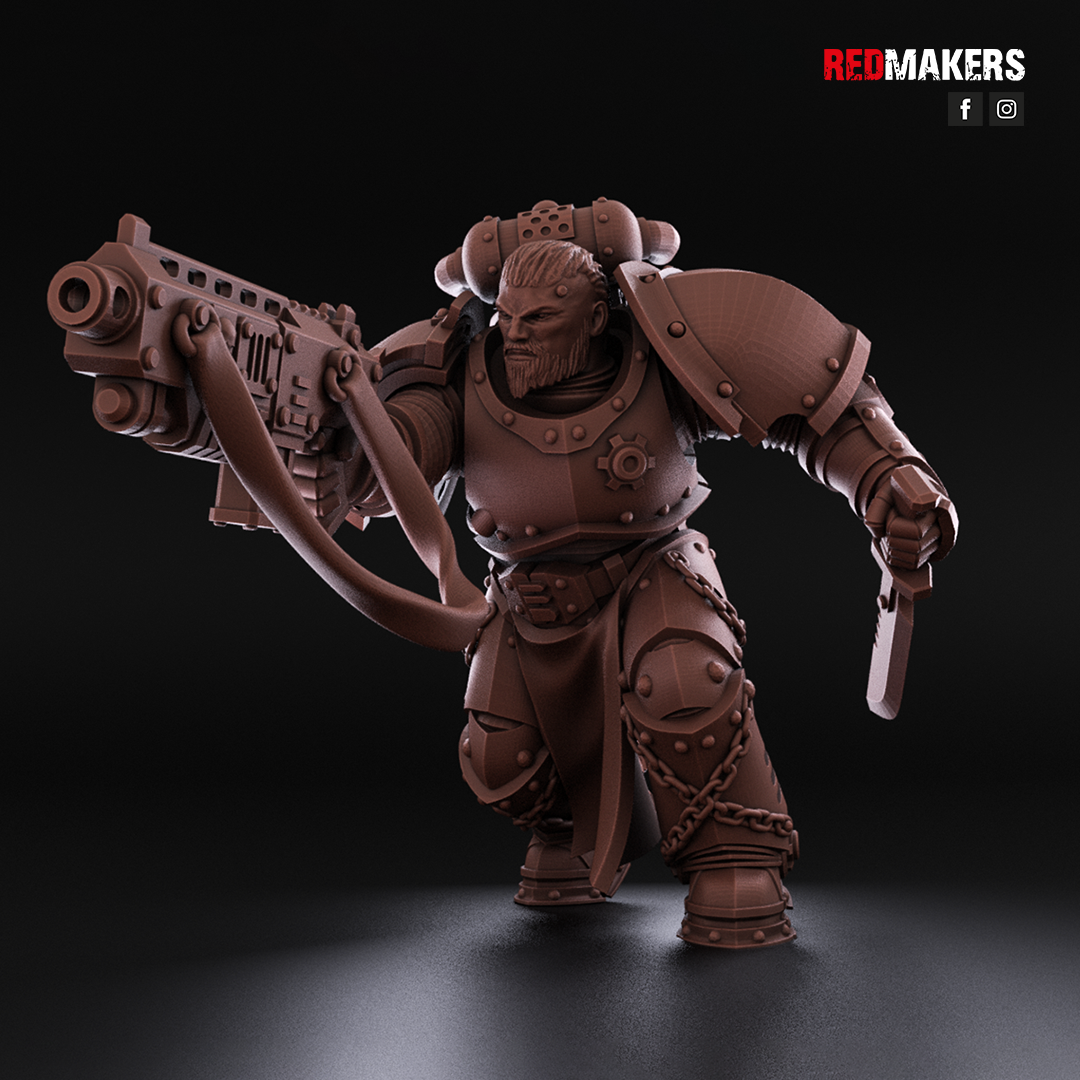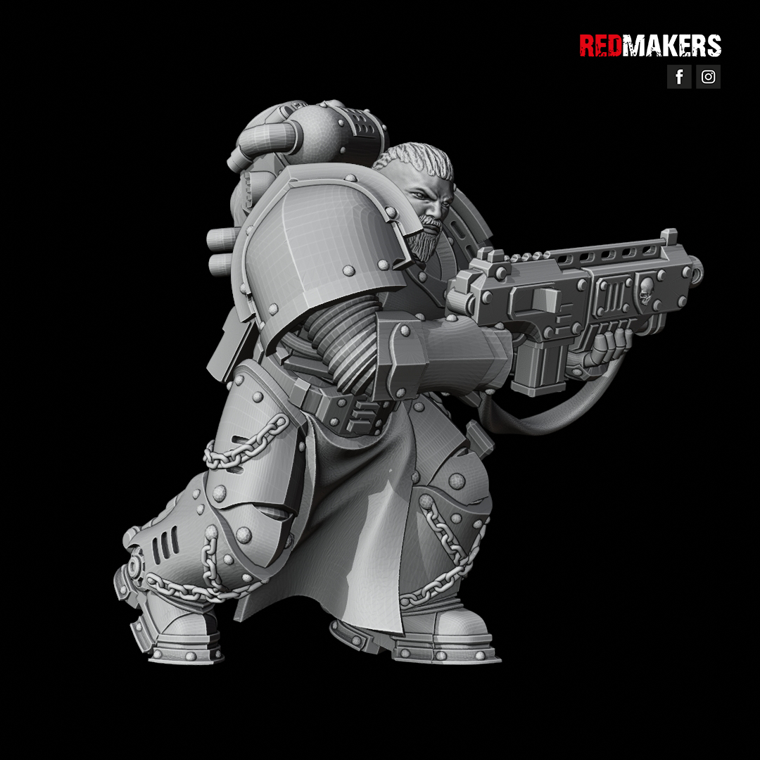The design of these unit is driven by the need to create warrior in a heavy armor suit in a sci-fi style. The shape of the armor is a consequence of the anatomical features of the human body, as well as the need to use it in motion. Any resemblance to other characters is purely coincidental.