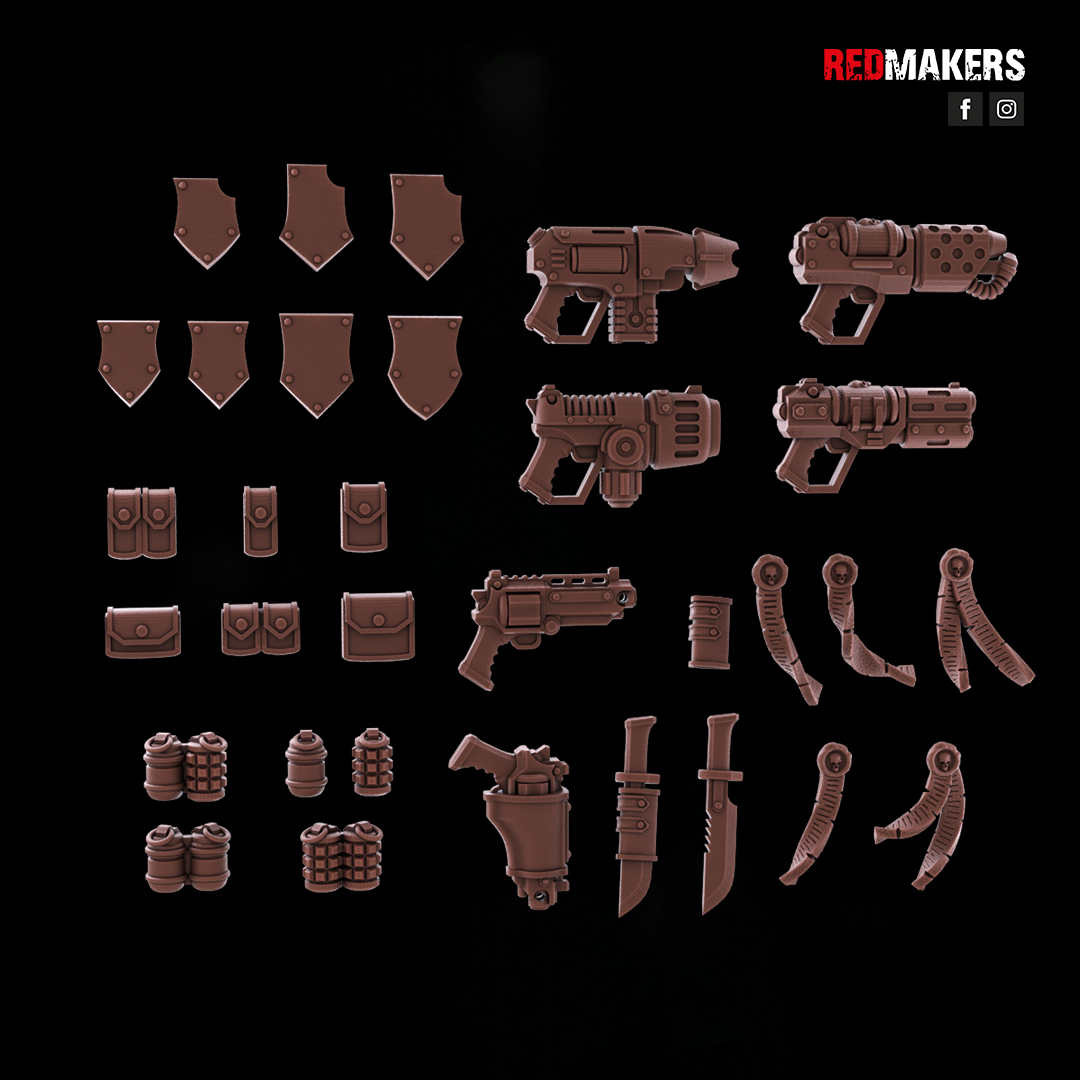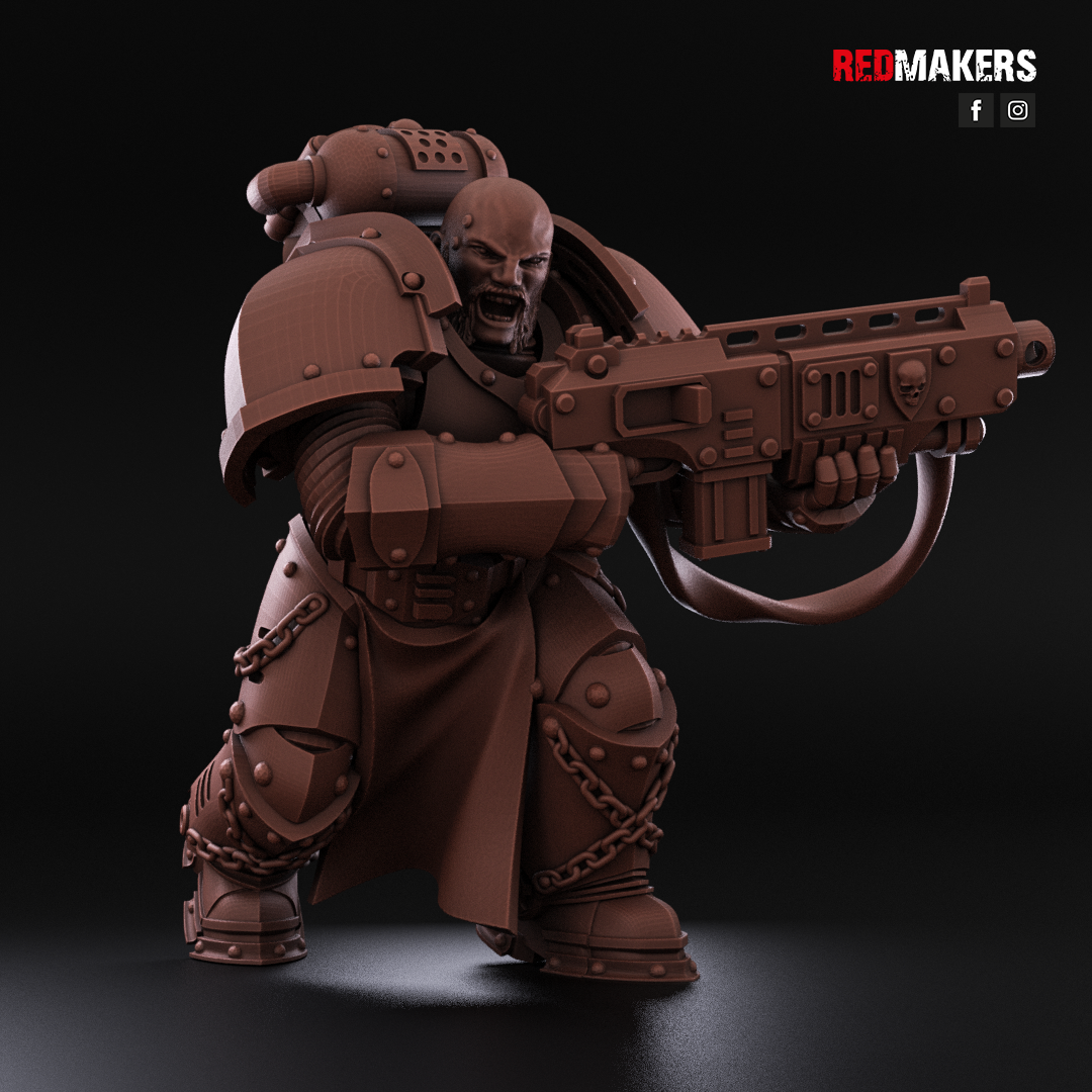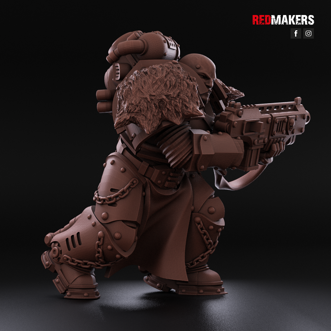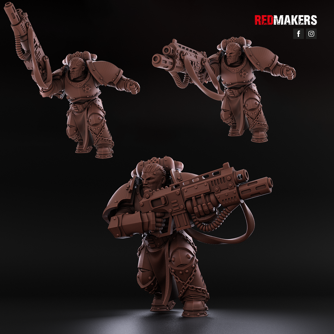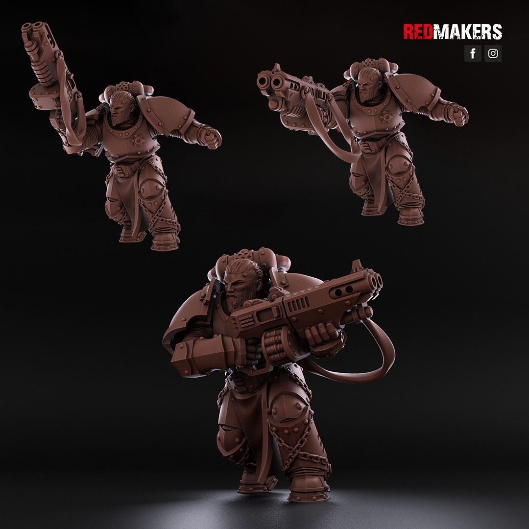The design of these unit is driven by the need to create warrior in a heavy armor suit in a sci-fi style. The shape of the armor is a consequence of the anatomical features of the human body, as well as the need to use it in motion. Any resemblance to other characters is purely coincidental.